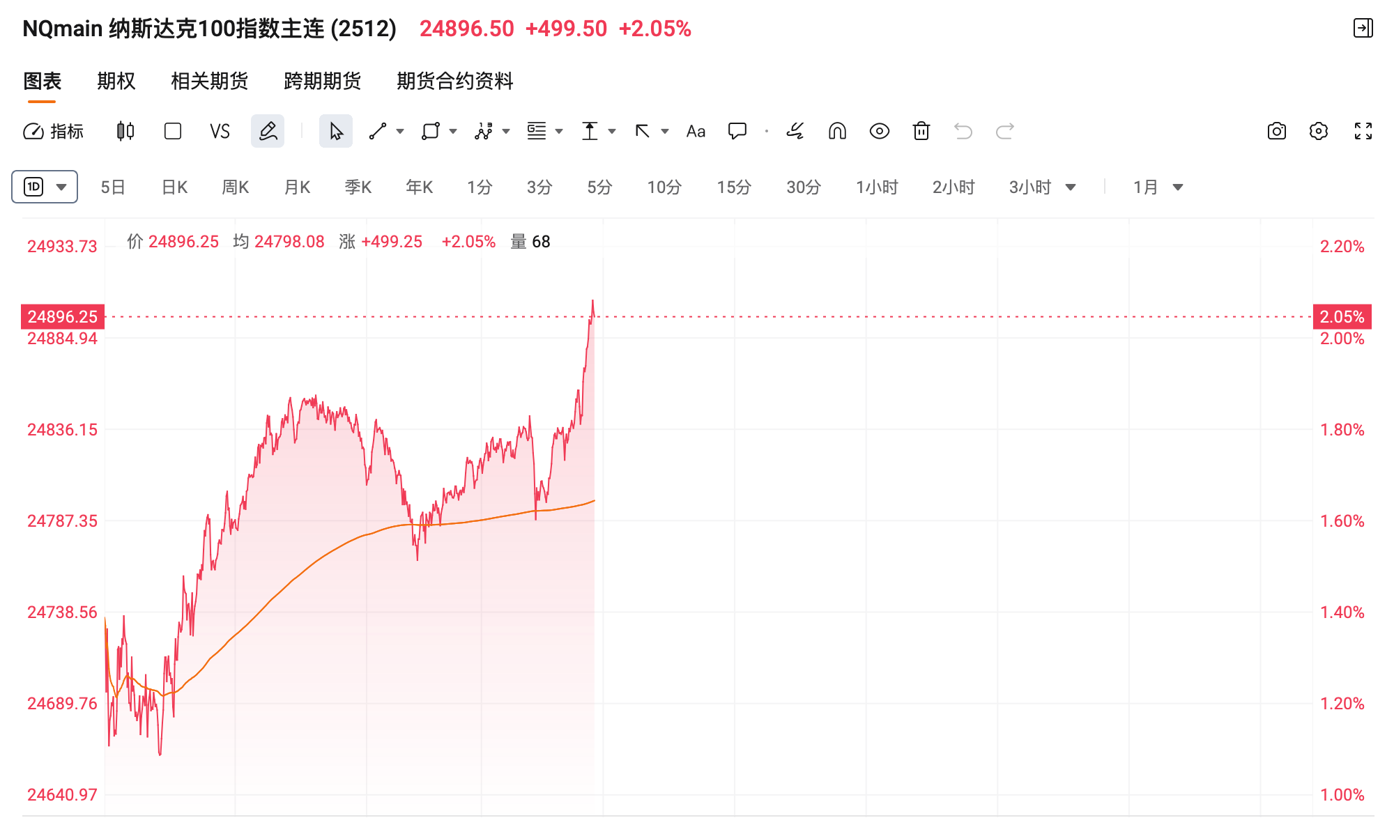 刚刚,纳斯达克100指数主连大幅走高,涨超2%