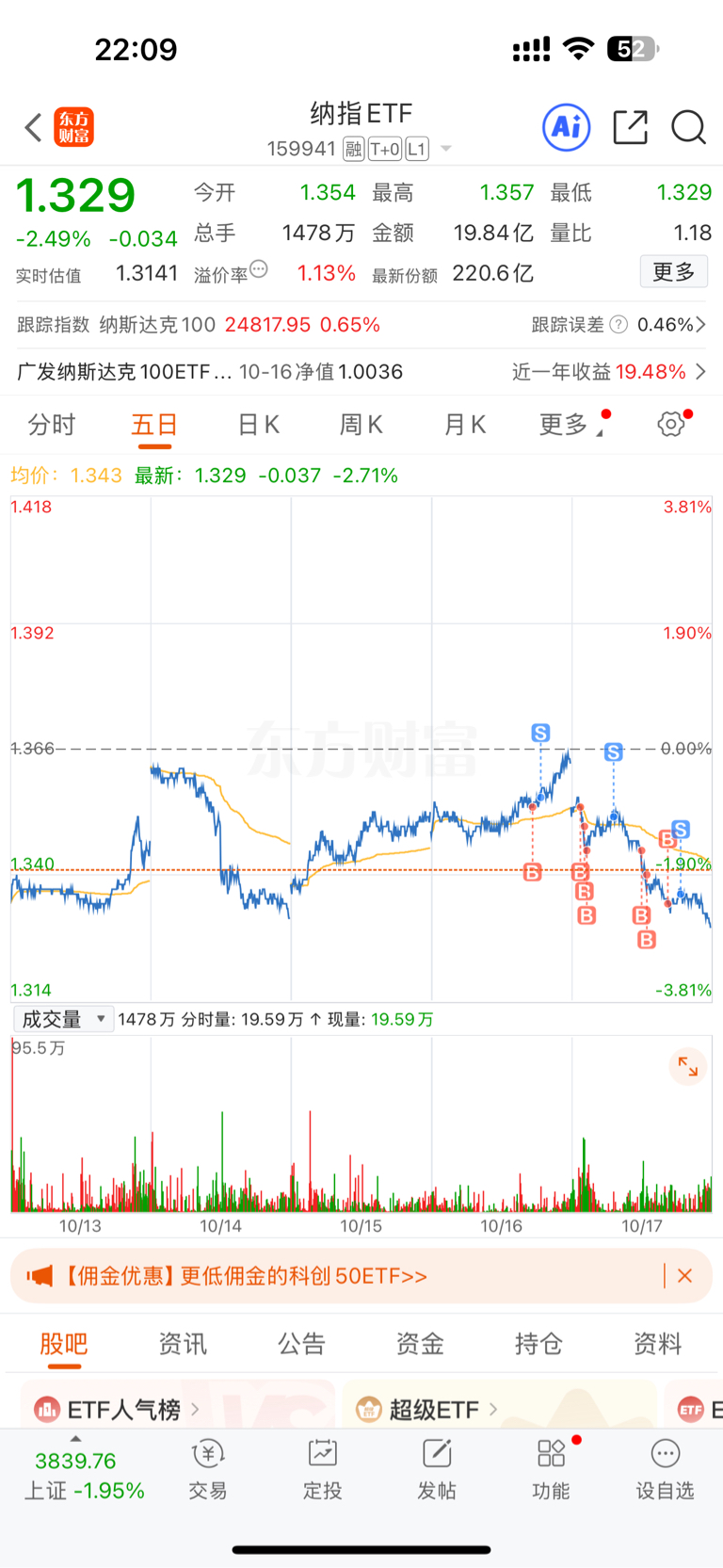 $纳指ETF(SZ159941)$ 明天能加个鸡腿吗?周五没T出来,就没割肉