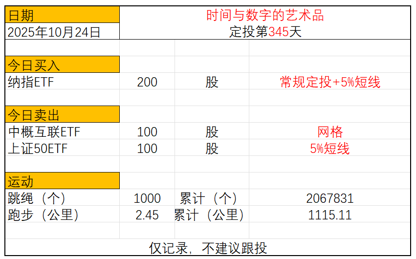 运动与投资第345天2025年10月24日今日定投:纳指ETF买入200股中概互