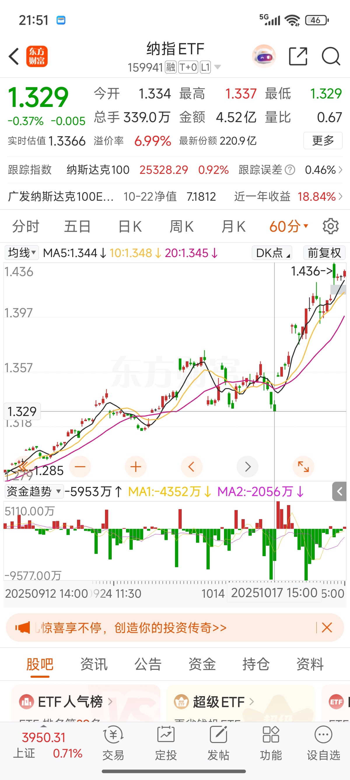 $纳指ETF(SZ159941)$ 假如你10月17号入场,格局到24号,已经赚了7.59个点!!