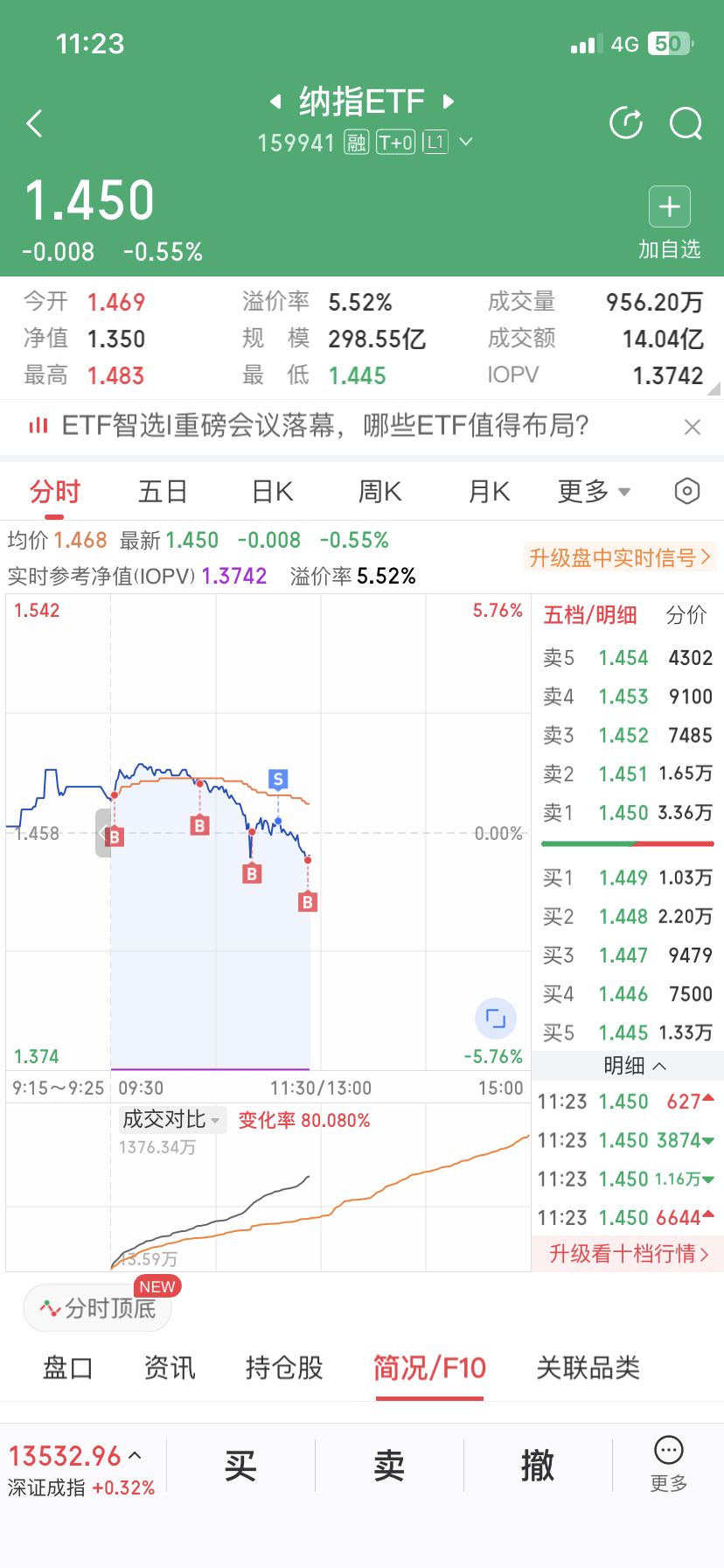 $纳指ETF(SZ159941)$ 1手一手加,和主力对着玩
