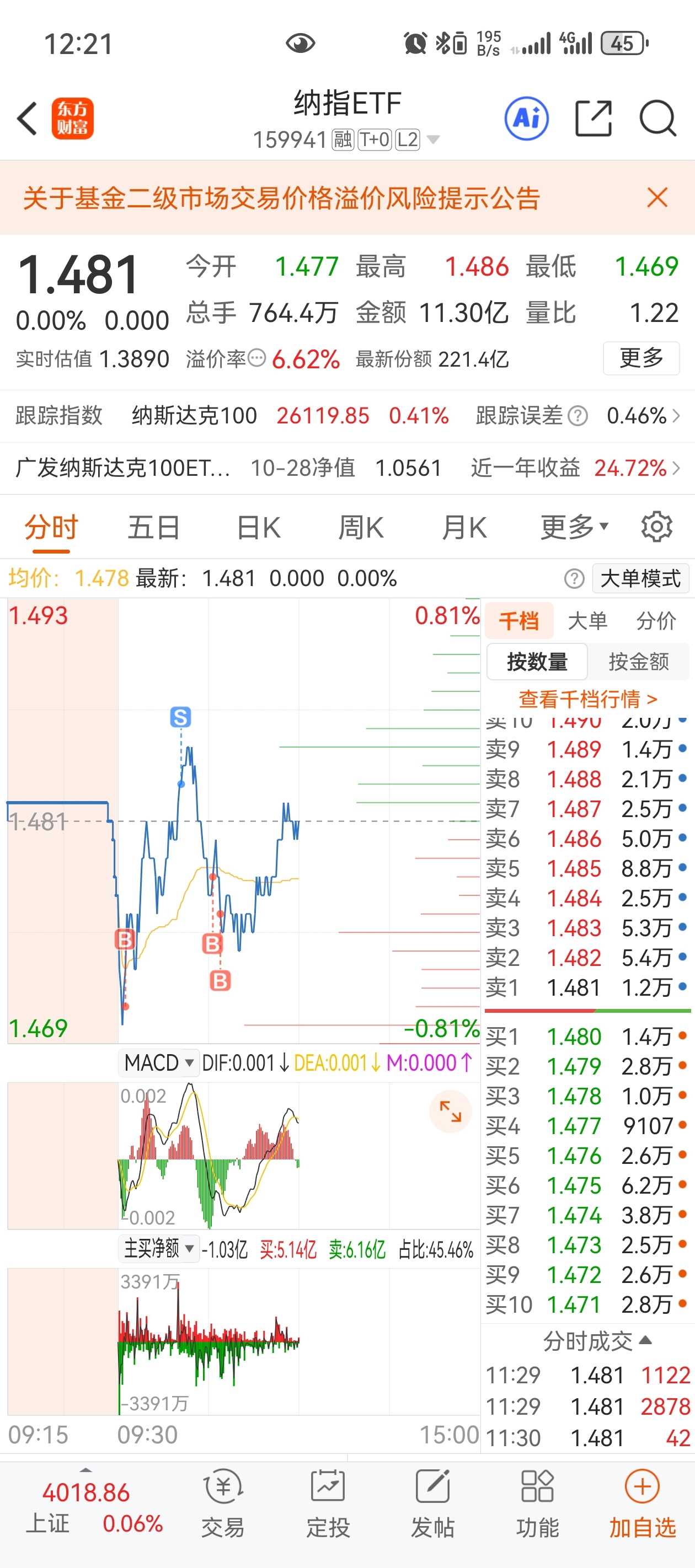 $纳指ETF(SZ159941)$ 兄弟们我没跑,只是做了个T
