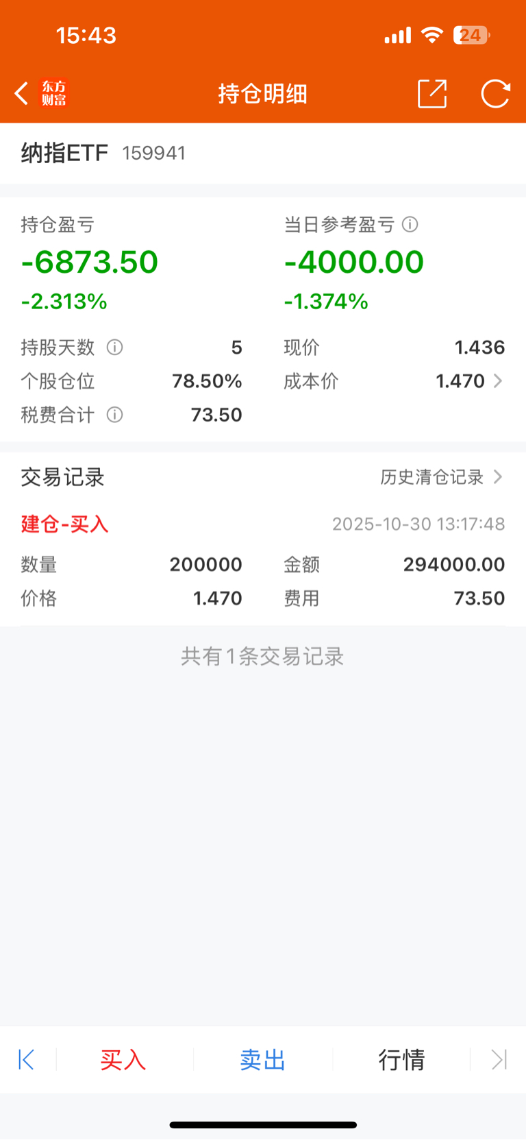 $纳指ETF(SZ159941)$ 建仓的第五天