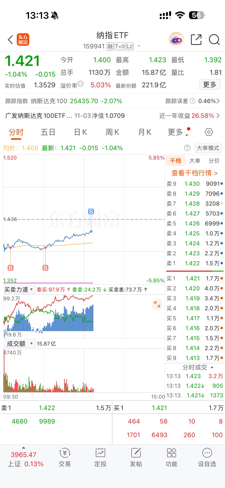 $纳指ETF(SZ159941)$ 赚五百块钱晚上吃顿好的