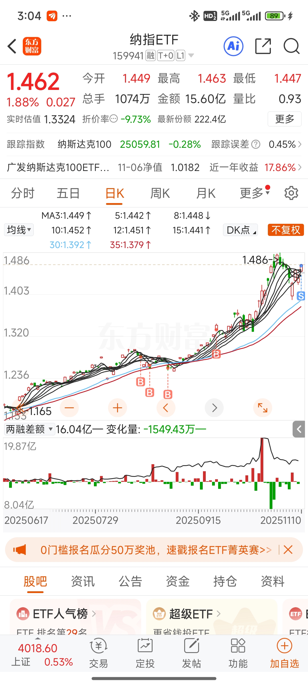 $纳指ETF(SZ159941)$ 溢价太高,我先跑一半