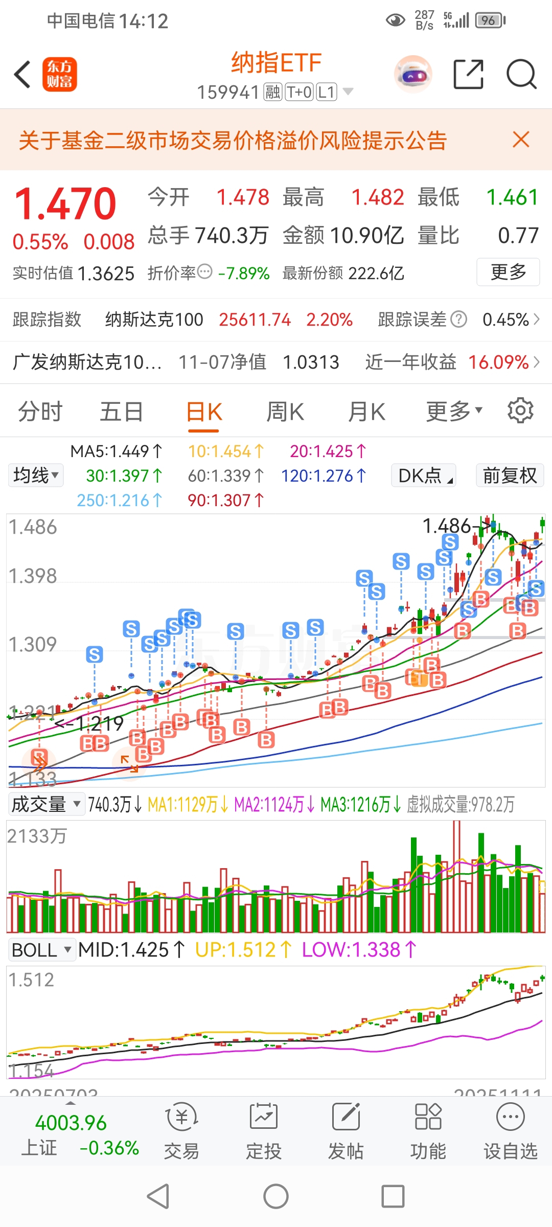 $纳指ETF(SZ159941)$ 绿买红卖,底仓留住,不用管什么溢价,没有任何意义,炒股这么多年,才发现如此简单