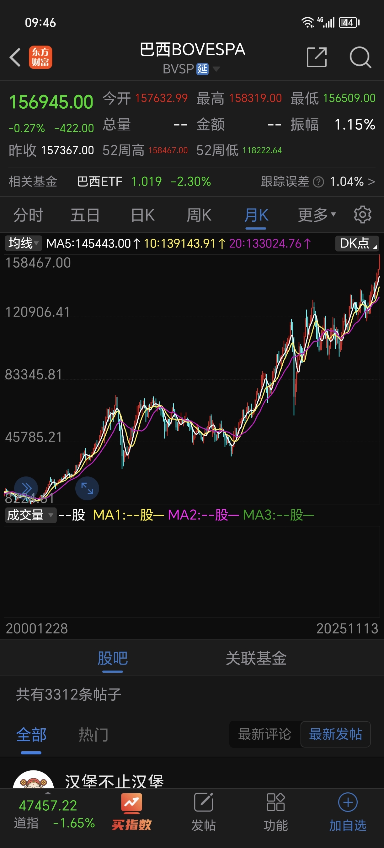$巴西ETF(SH520870)$ 这么牛逼的市场上市第二天给干折价了这科学吗,别说涨了几万年头一天还历史新高,老A一上市世纪大顶了
