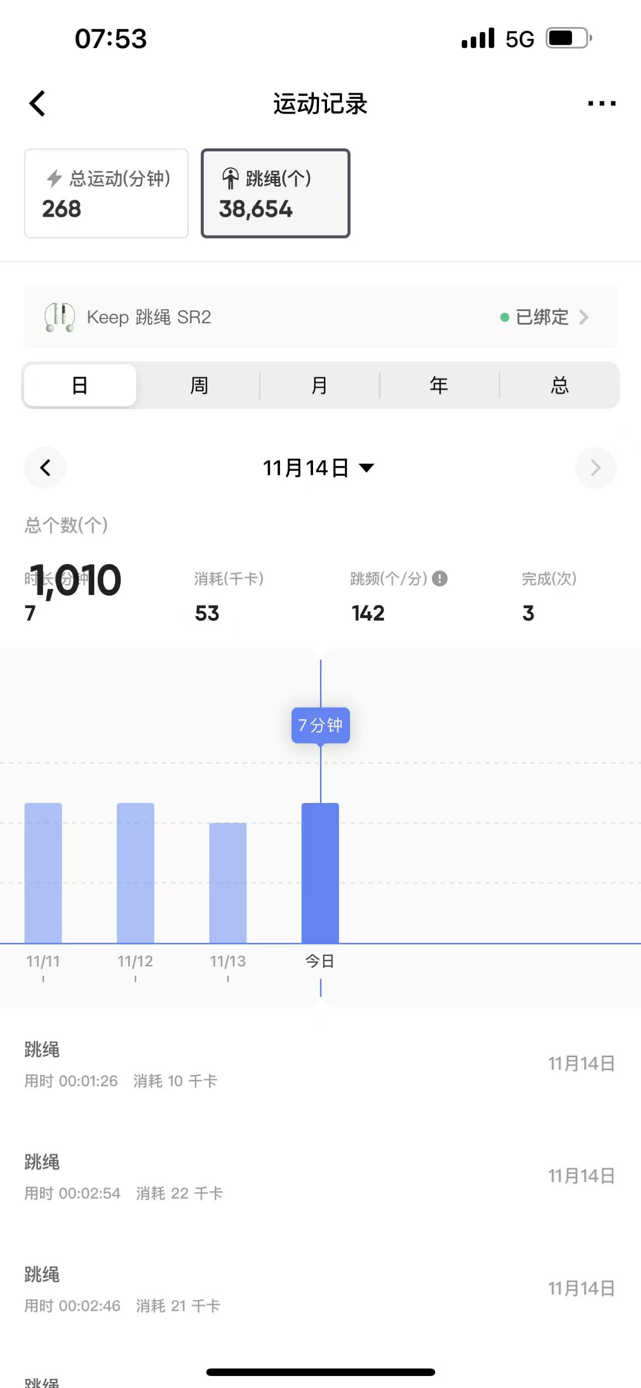 跳绳:1000个,累计跳绳:2088831个