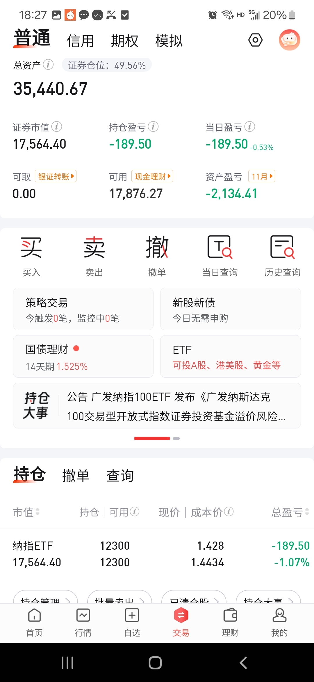 对不起大家,被我买崩了,周五买的黄金ETF今天割肉买的纳指ETF又跌了