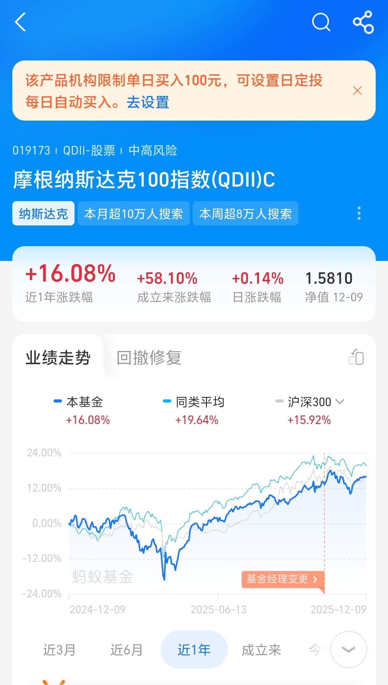 $纳指ETF(SZ159941)$ 摩根很快就恢复到100元限额,杀溢价很难再下去的,这时候反而是买入的机会,别等到溢价恢复到了七八点又嫌溢价高了。