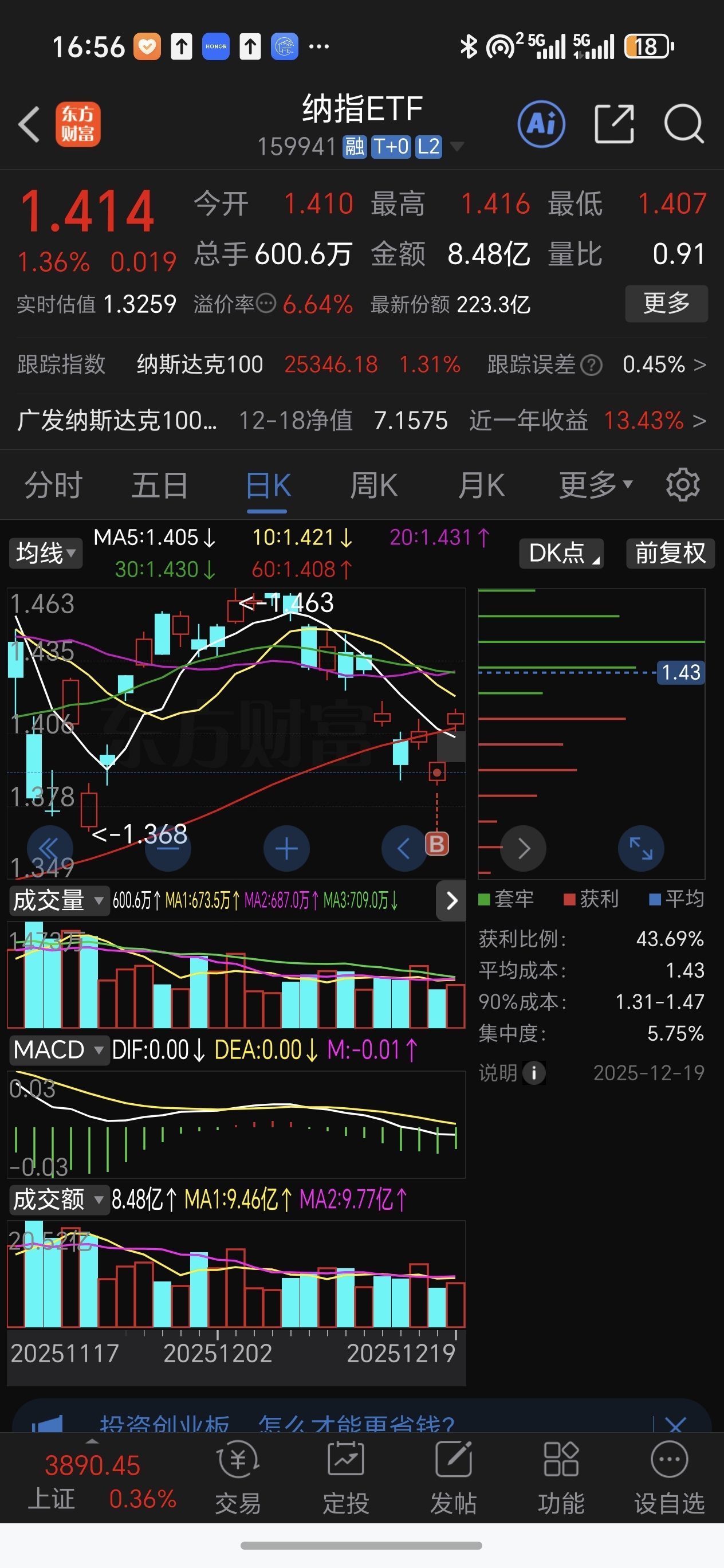 $纳指ETF(SZ159941)$ 成功抄底,只是仓位低的可怜