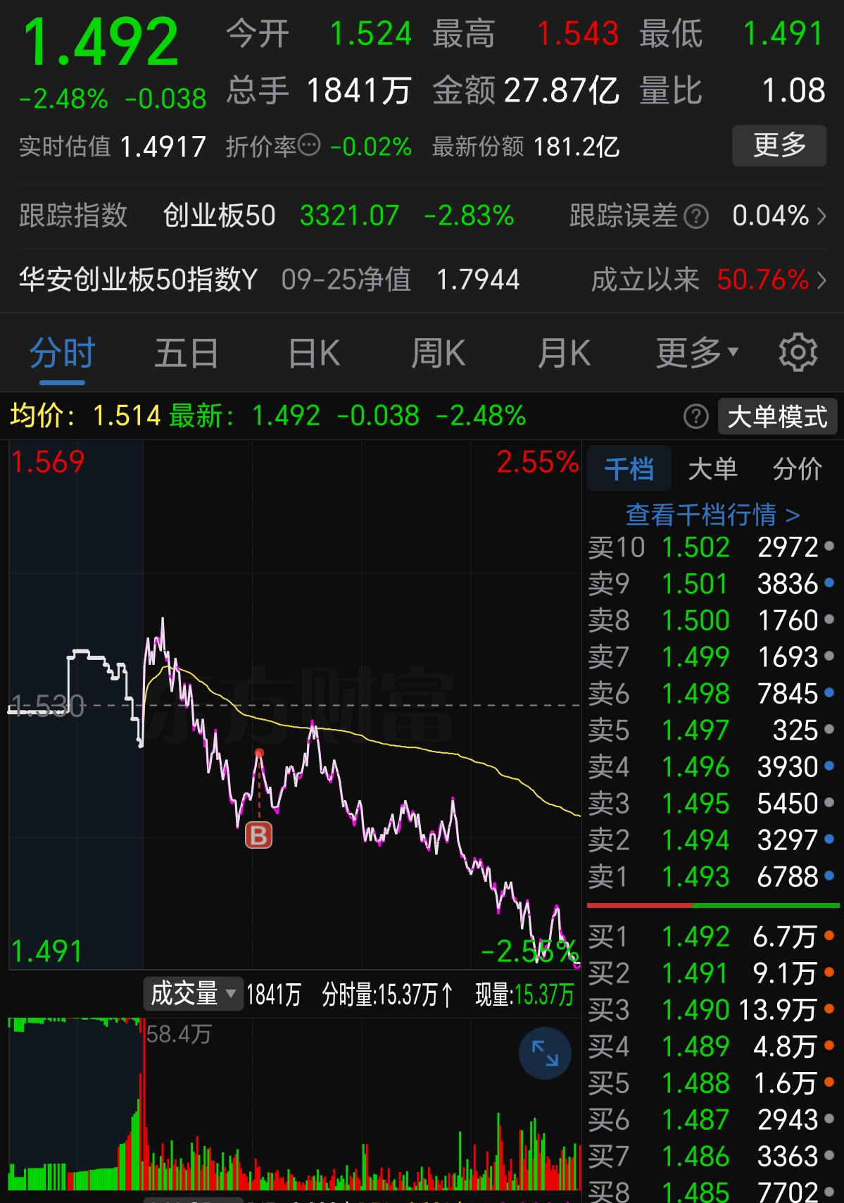 $创业板50ETF(SZ159949)$ 一手买崩了创业板50