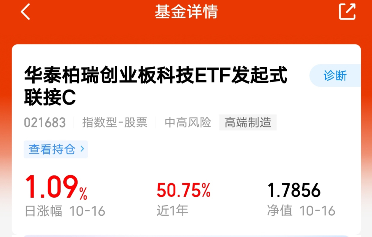 最近市场震荡,但我对科技依然有信心。看看$华泰柏瑞创业板科技ETF发起式联接C$