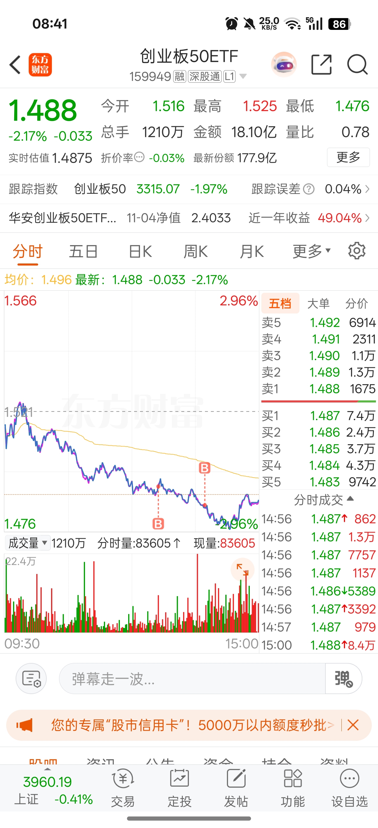 $创业板50ETF(SZ159949)$ 感觉今天继续跌了,昨天想拿个反抽失败了。
