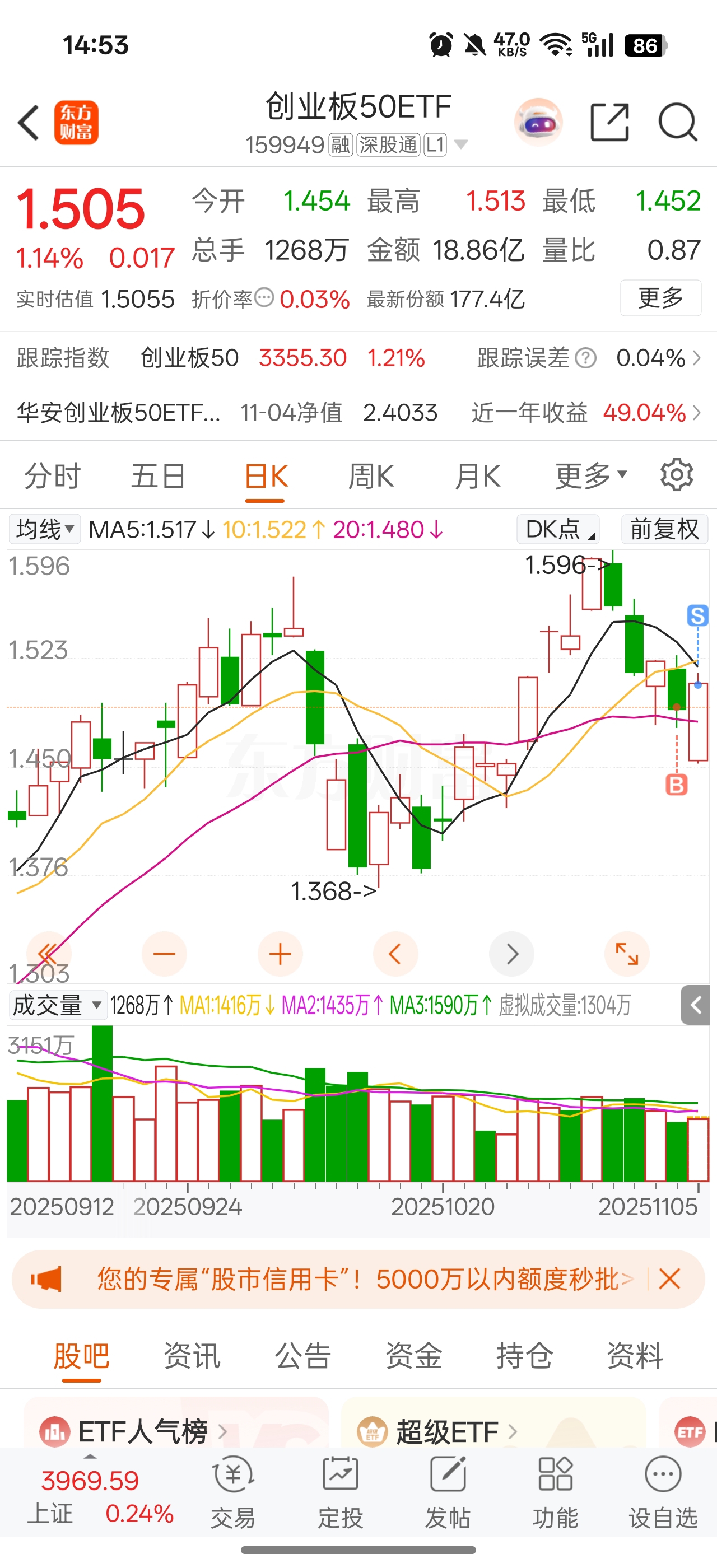 $创业板50ETF(SZ159949)$ 反抽而已,一走了之。