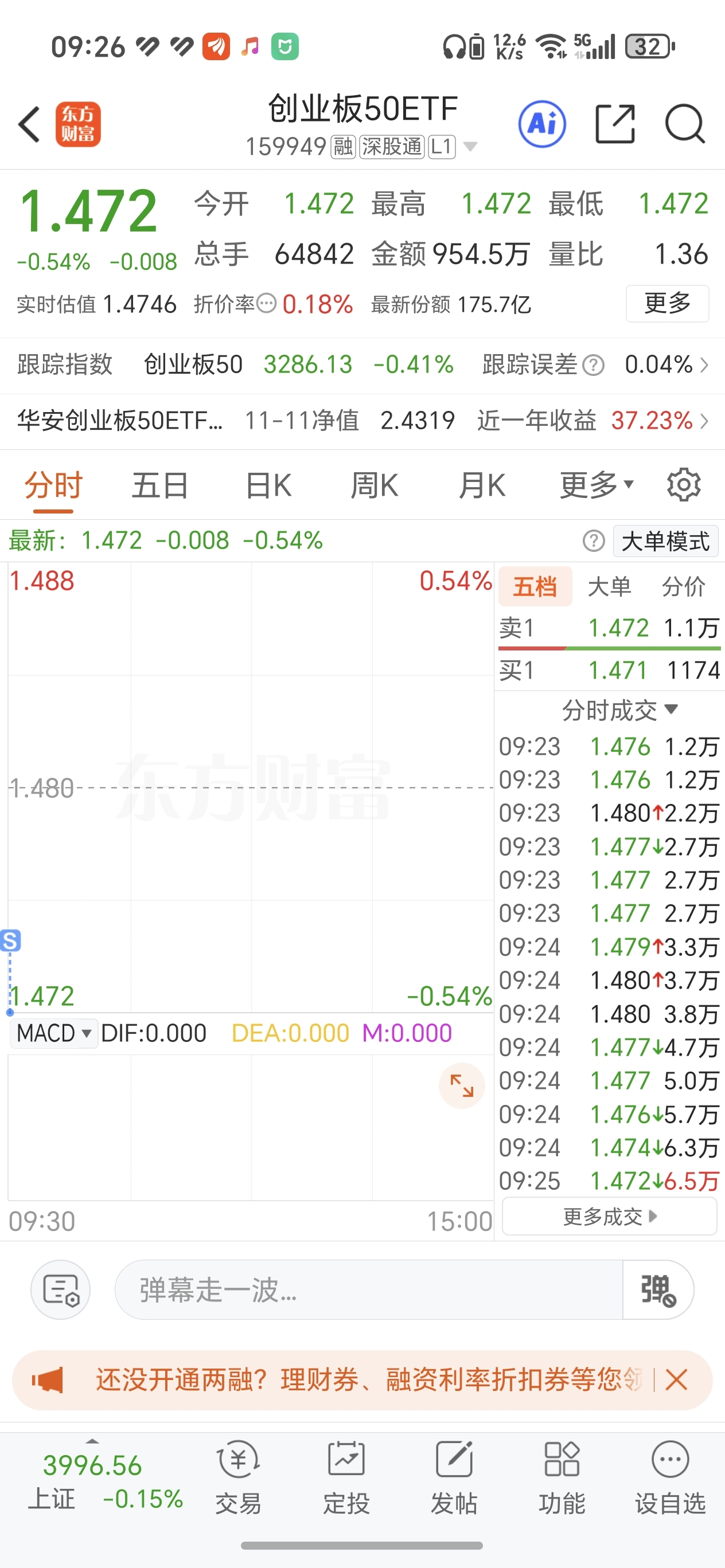 $创业板50ETF(SZ159949)$ 尴尬尴尬,早知道低开这么多,不卖了,应该是埋在谷底了