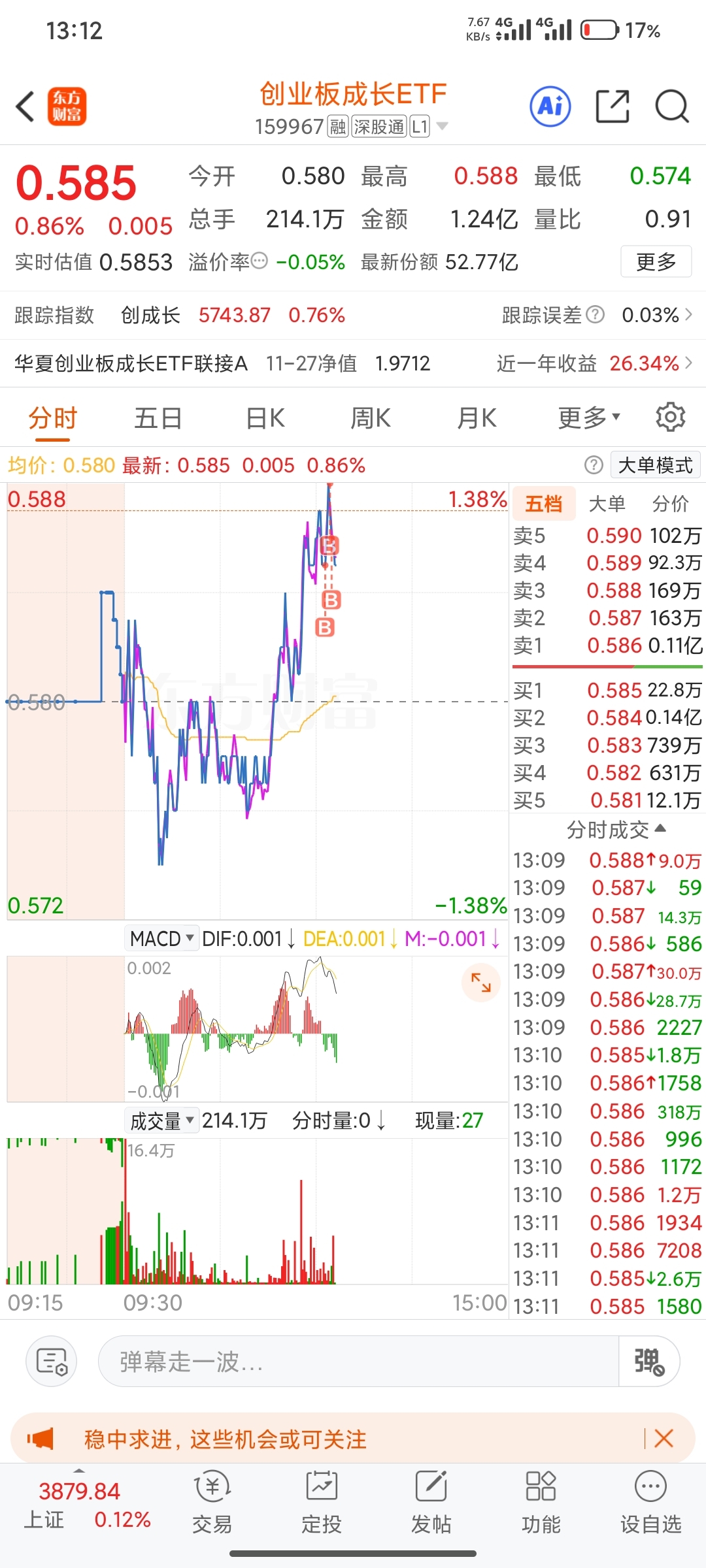 $创业板成长ETF(SZ159967)$ 兄弟们,我来了