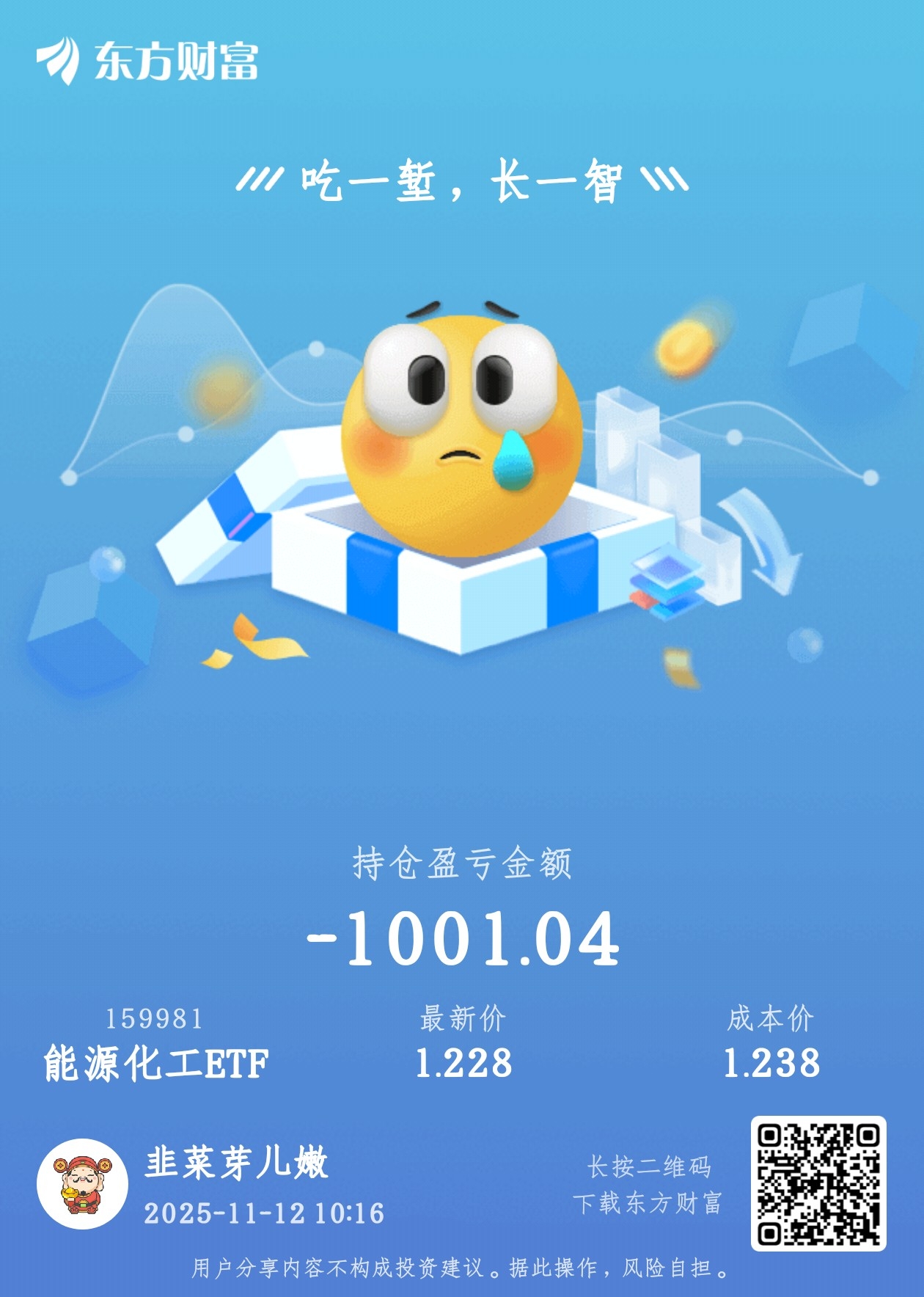 $能源化工ETF(SZ159981)$ 不错,快盈利了