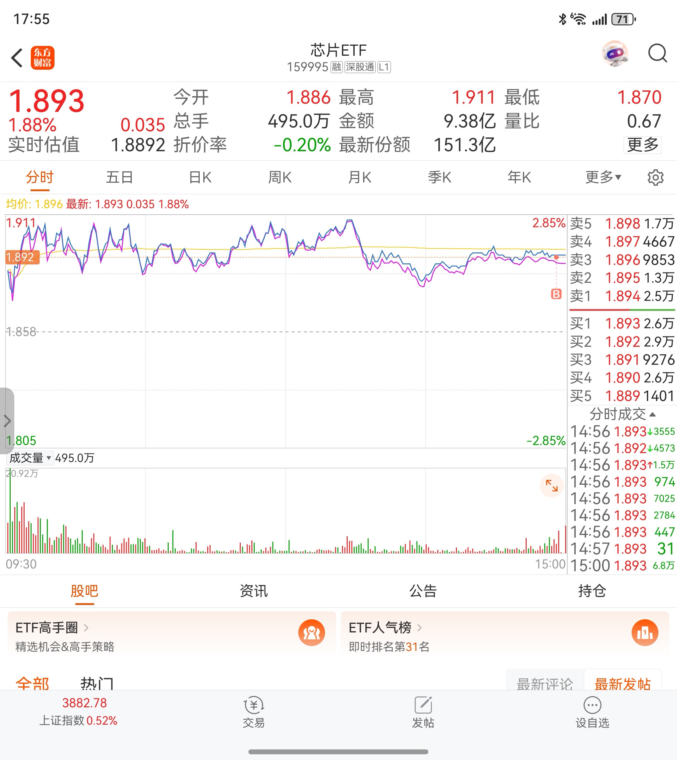 $芯片ETF(SZ159995)$ 今天尾盘半仓压入,节假日期间国内外肯定会有利好消息放出。各位慢慢等吧!