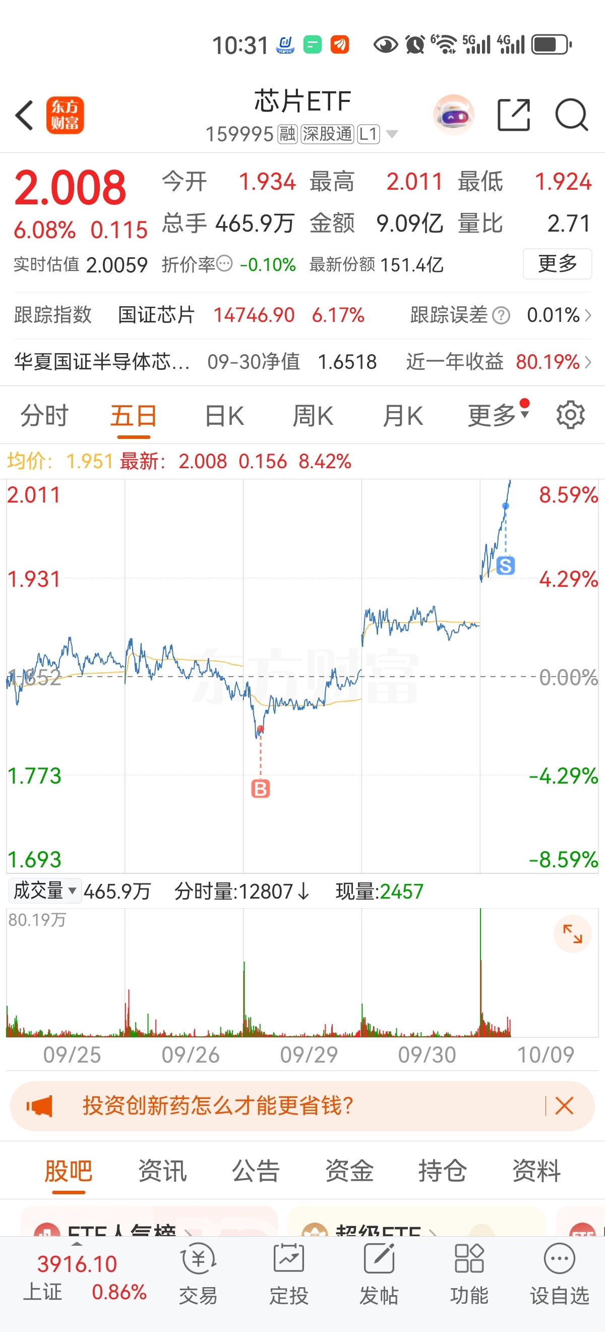 $芯片ETF(SZ159995)$ 我哩个豆诶