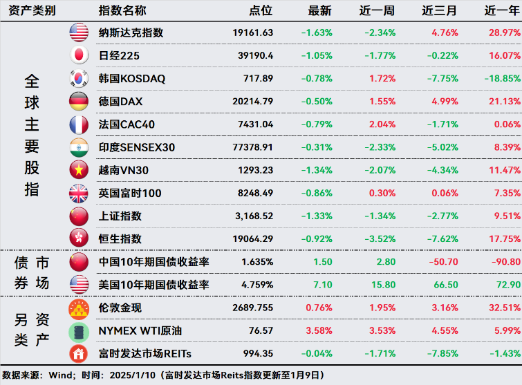 股市:非农就业数据增长打压美联储降息预期,美国三大股指重挫,周线均录得两周连跌。道指、纳指、标普500指数分别下跌1.86%、2.34%、1.94%。欧洲股市表现优异,法国领涨2.04%,德国、英国分别上涨1.55%、0.30%。亚太主要股指全线收跌,印度、越南、日本分别下跌2.33%、1.92%、1.77%,恒生指数下跌3.52%。A股三大指数全线下跌,上证指数、深证成指、创业板指分别下跌1.34%、1.02%、2.02%。