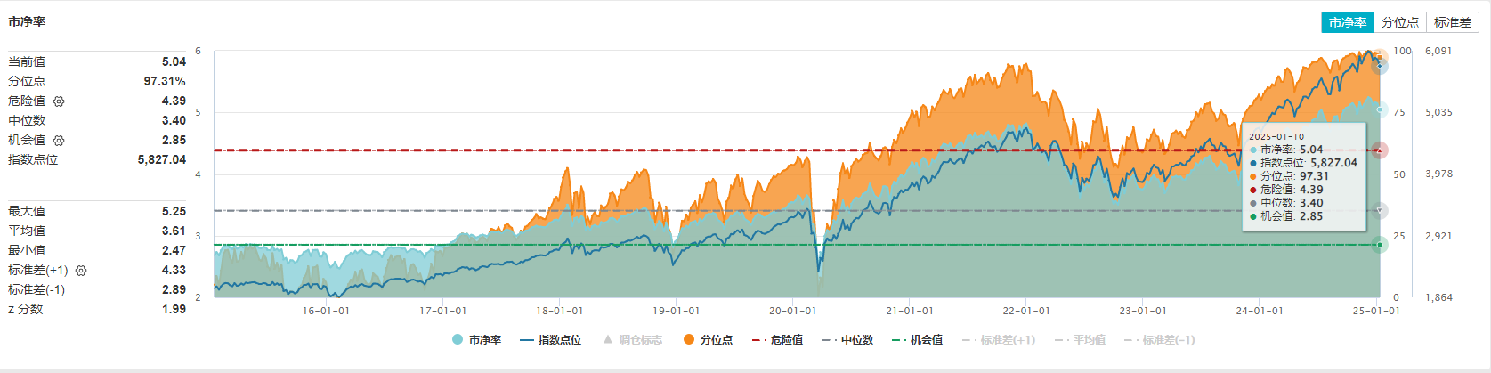 尽管美股近期有所回调,但估值仍然处于近20年来最高水平。标普500当前市净率超过了5倍,处于近10年97.31%的分位;纳斯达克指数的市净率分位更是高达99.04%。虽然美股在历史上表现较好,且部分分析师仍然对美股市场的前景持乐观态度,但估值的高企仍是不容忽视的潜在风险。从历史上看,当股票收益率落后于债券收益率时,股市往往面临风险。