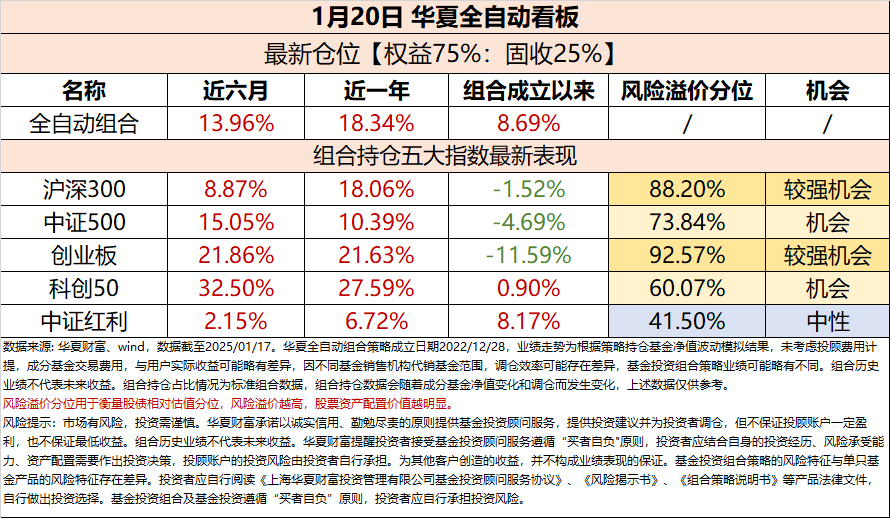 【1月20日】全自动看板!持仓五大指数最新表现如何?