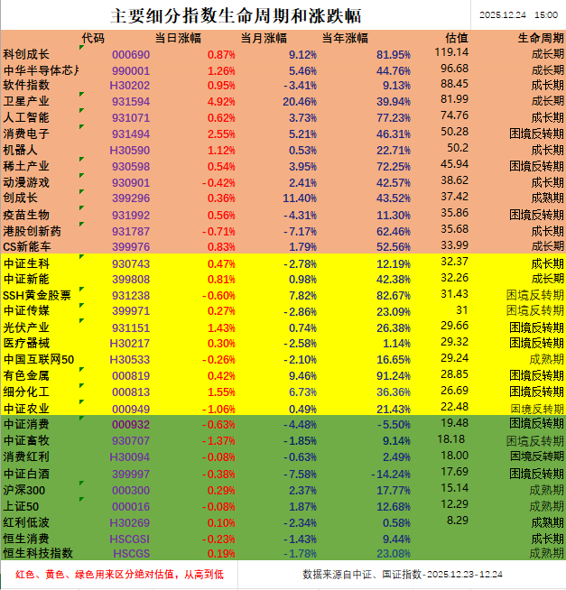 而内需消费板块,消费红利收跌0.08%,CS创新药收跌0.02%。(以上Wind,2025.12.24)