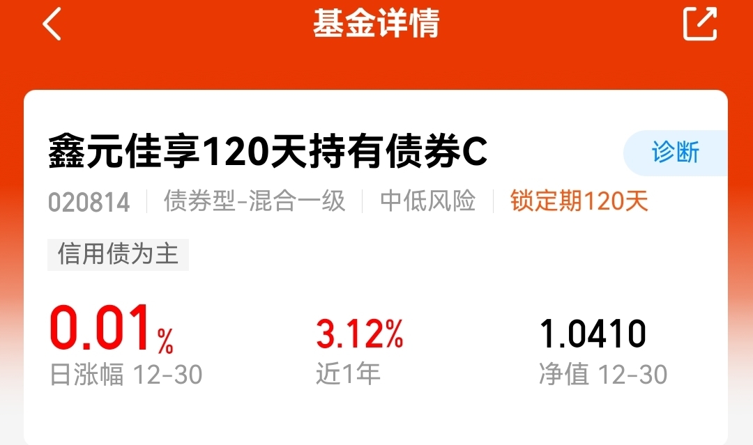 来了,$鑫元佳享120天持有债券C$又稳稳到手1个大蛋太香了~不求暴涨只求踏实,