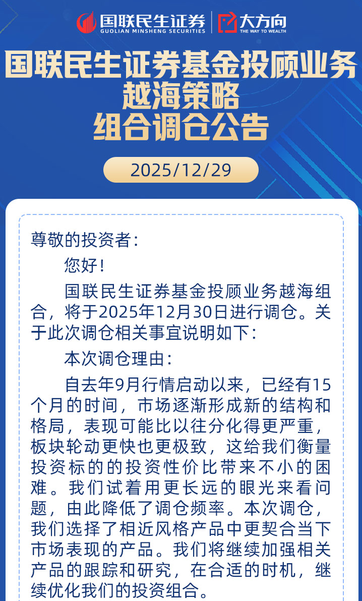 国联证券【越海】投顾组合2022年7月成立,2025年12月30日第4次调仓,柠檬君以基金投顾体验官视角来解读这次调仓。老朋友可以略过前三部分!