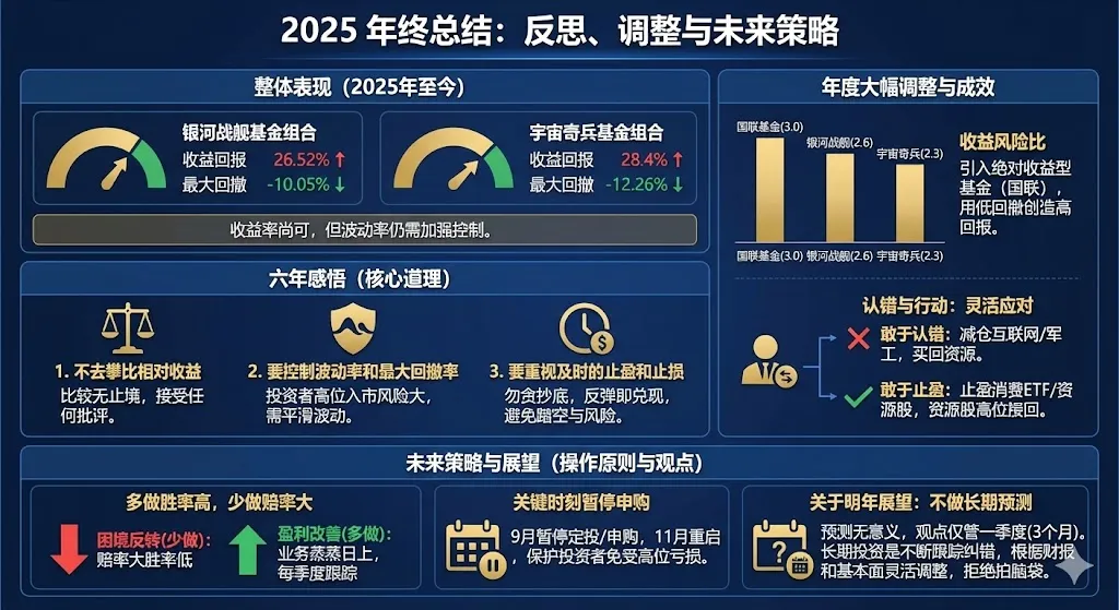 2025年战舰和奇兵都取得超过25%的收益,但药师想谈的不是赚了多少,而是过去六年管理组合的时候,不断强化的一个核心理念——控制回撤。