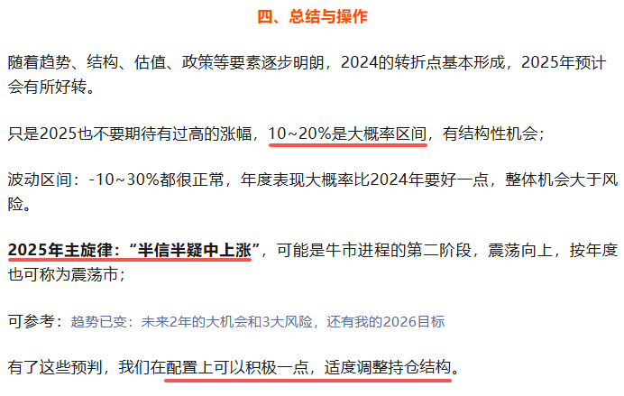 关于2026年,大概率将延续牛市进程,只是我们要做好三手准备。