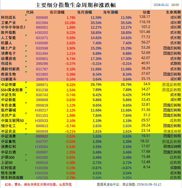 另一方面,红利低波收涨0.15%,细分化工收跌0.74%,建筑材料收涨0.56%,消费红利收涨0.54%,疫苗生物收涨0.36%;内需消费板块依然还是比较低迷。(以上Wind,2026.01.12)