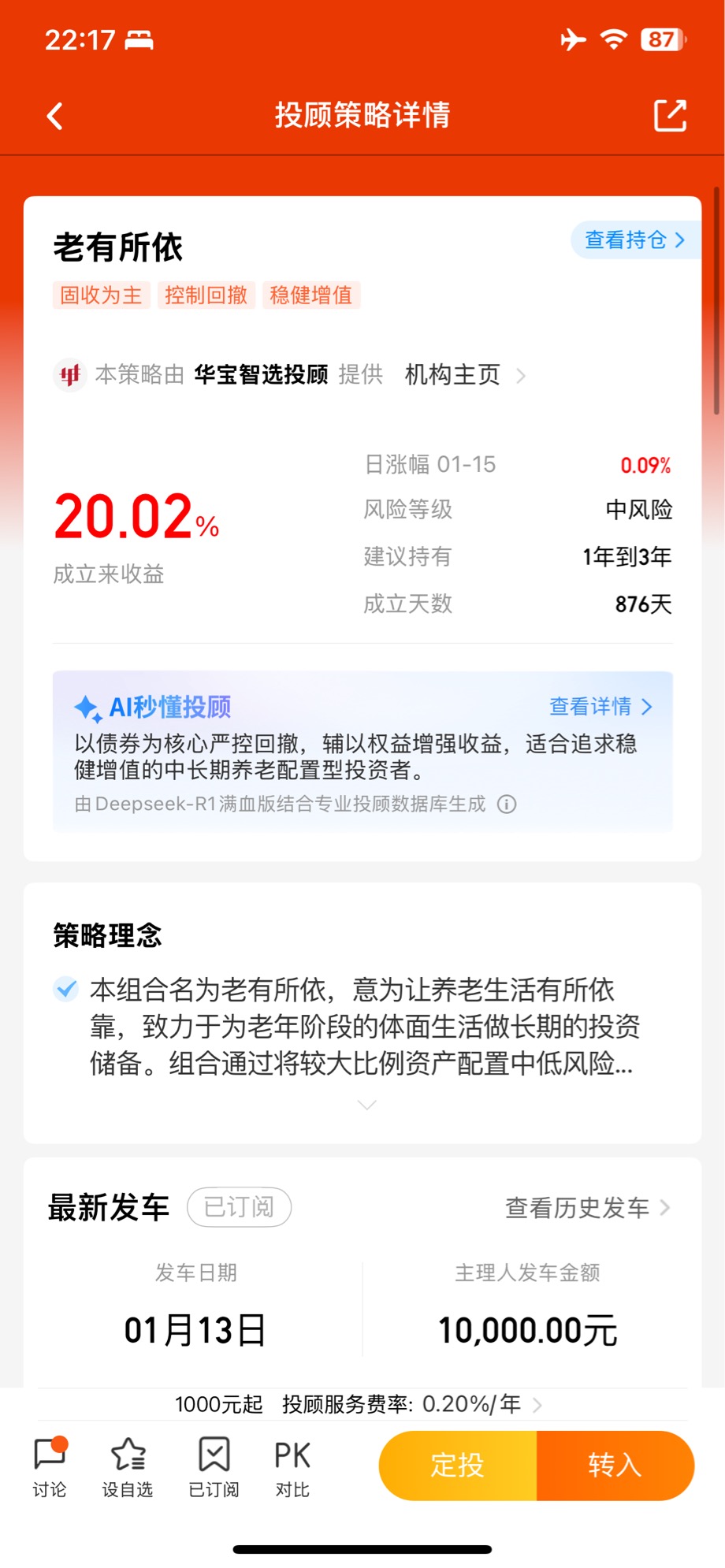 投顾跟车晒收益:富贵闲人-0.06%,老有所依+0.09%