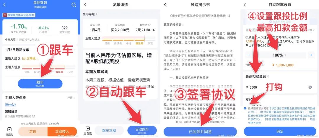 注意:最近我们投顾组合开通一个新功能:组合自动跟车,大家也可以按照下图流程在雪球基金APP签署自动跟车,定投后续就不用自己操作了