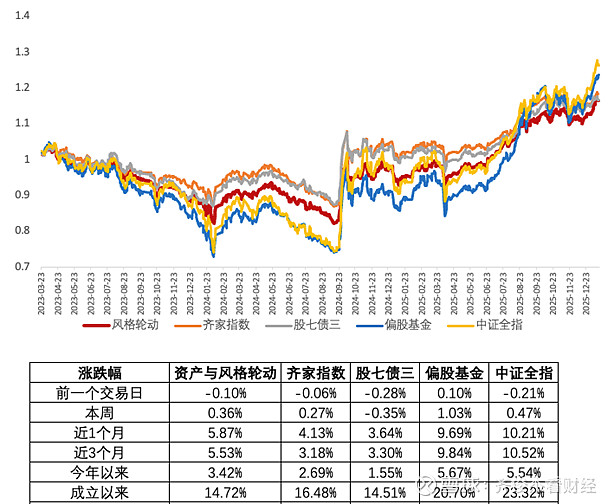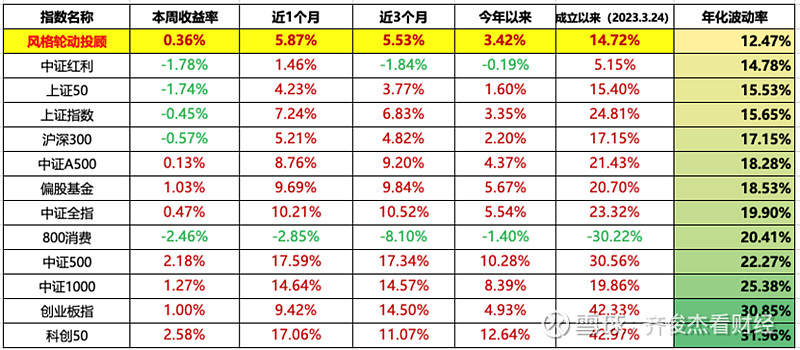 这周市场非常热闹,或者说开始变得惊心动魄。就在大家都沉浸在炒作热情之中时,政策开始出手压降情绪。不过从结果来看,这周还是科技成长和小票风格表现更好,红利价值板块反而跌了近2%。中证全指这周小涨0.47%,风格轮动这周收涨0.36%,和全指差不太多。因为均衡所以涨跌基本介于成长和价值之间。开年以来,目前涨幅3.42%。