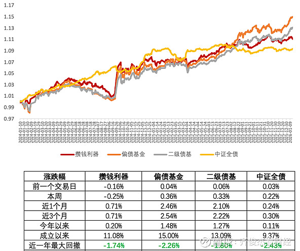 攒钱利器这边,本周依旧处在逆风期,小幅下跌了0.25%。因为这周价值板块表现不佳,红利指数还在下跌,原因上面已经解释过。不过攒钱利器只有25%的红利权益仓位,跟100%仓位的纯红利指数,波动维度肯定是不一样的。比如开年以来,红利低波指数已经跌了2.75%,攒钱利器还是收涨了0.2%。一般攒钱利器的逆风期,主要指的也是收益跑的慢,而不是大亏了多少。它平时的回撤波动,基本都在2%以内。如果对当下的市场环境感到恐高,纯粹想做防守,风险承受力也不高的话,其实现在倒是加仓攒钱利器的好时候。因为债和红利最近几个月都在逆风。而如果觉得市场上下都有可能,只是波动加大,还想增加一些预期收益空间,同时也有一定风险承受能力,那么可以继续分批加风格轮动。