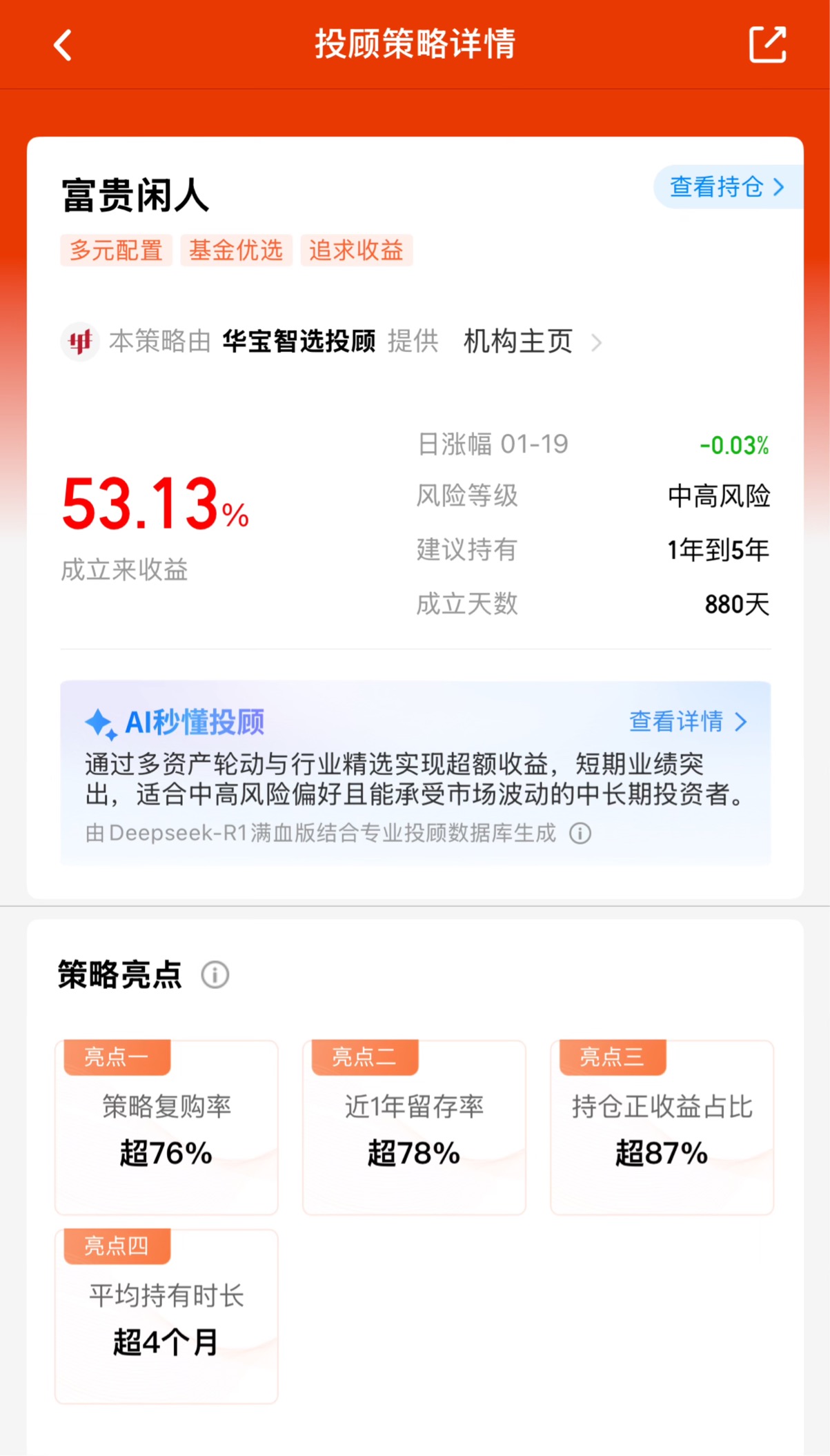【富贵闲人】今日微跌0.03%,近一年涨40.24%,成立2年多年化回报20.10%。买入10万块,今日收益-30元,近一年赚了40240元,长期持有每年平均赚20100元。