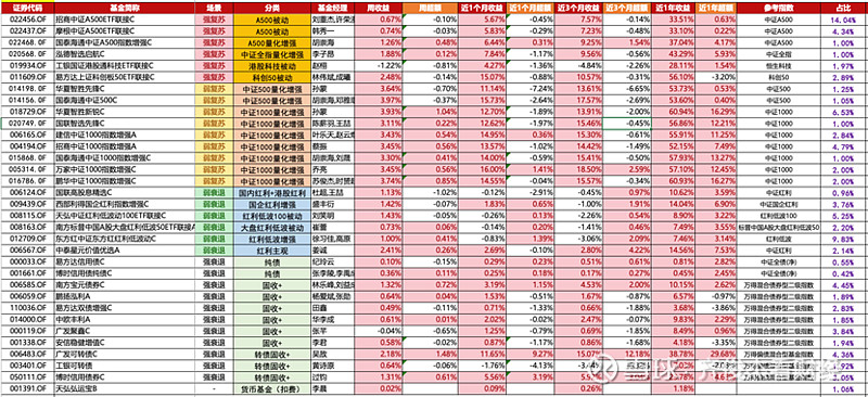 最后我们继续讲下风格轮动持仓中的基金。这次说一下上次调仓中新纳入的鹏华1000增强。鹏华量化团队在市场中也比较有名,之前我们拿过他的300增强,后来统一换到了A500上。这些宽基指增,都由苏俊杰总管理,策略逻辑基本也是一致的。这些年超额排名都在市场前列。他们的增强逻辑,如果用一句话总结就是,多因子框架为锚,人工智能为帆。主要也是通过机器学习的方式,精选200-300个因子引入模型,比如财务附注、产业链、专利数据、新闻舆情等等。利用AI的强大拟合能力,多维度挖掘有效信息,对股票进行打分。同时也会持续对因子进行迭代,高度重视风控偏离度。并且鹏华整体量化策略定位中低频,一方面可以减少交易摩擦损耗,另外一点就是策略容量会更大一些。不至于说规模刚起来一点,策略就失效了。近一年,对1000指数也跑出了16%的超额。