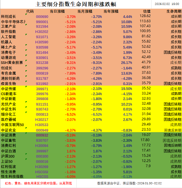 港股方向也出现了明显的调整,恒生指数下跌2.23%,恒生科技下跌3.36%。(以上Wind,2026.02.02)