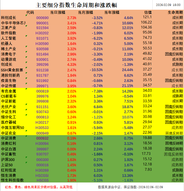 而消费板块总体表现的还是要弱一些,在全球持续动荡不安的情况下,市场对于消费板块的犹豫肉眼可见,最终消费红利收涨0.16%,中证白酒平盘。(以上Wind,2026.02.09)