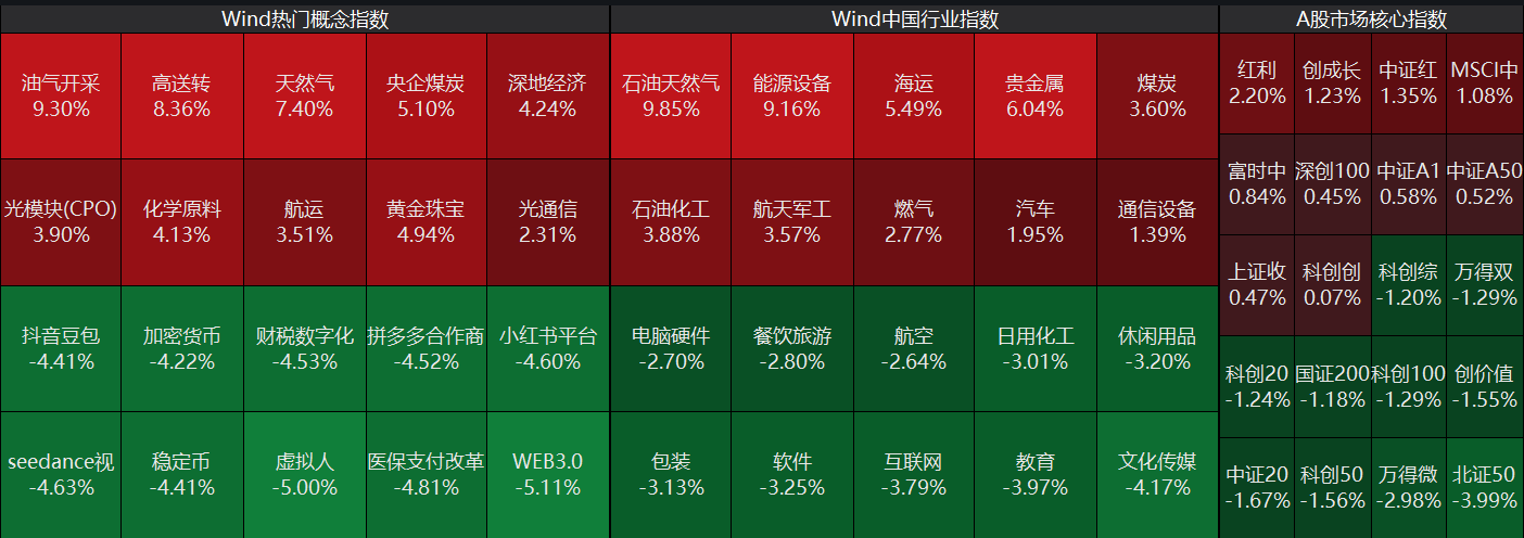 对于周末发生的中东冲突,市场各方都有不同的预期,最终上证指数收涨0.47%,创业板指收跌0.49%,沪深京三市成交3.05万亿,从指数层面看,基本符合我们的预期。