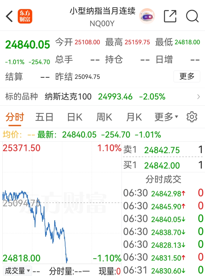 大跳水!纳指期货连续跳水续跌1%,离预测支撑位24709只有一步之遥