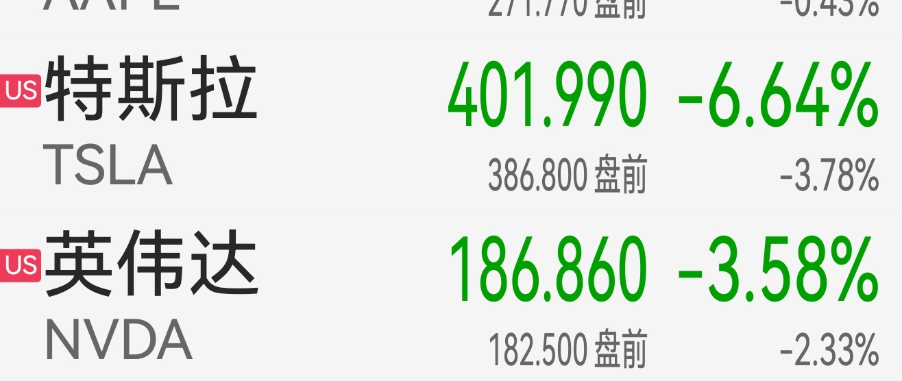 美股昨夜暴跌,纳斯达克指数跌2.29%,标普500跌1.66%,道琼斯跌1.65%,其中科技明星特斯拉暴跌6.64%,英伟达大跌3.58%。