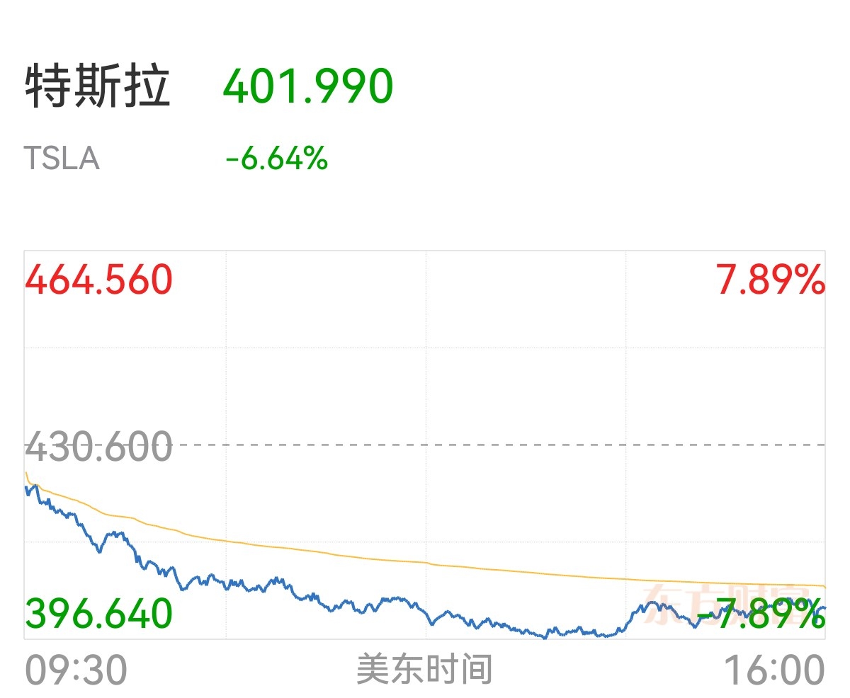 11.14日:特斯拉跌6.64%,收报于401.99;纳指期货收报于25079,跌2.13%。