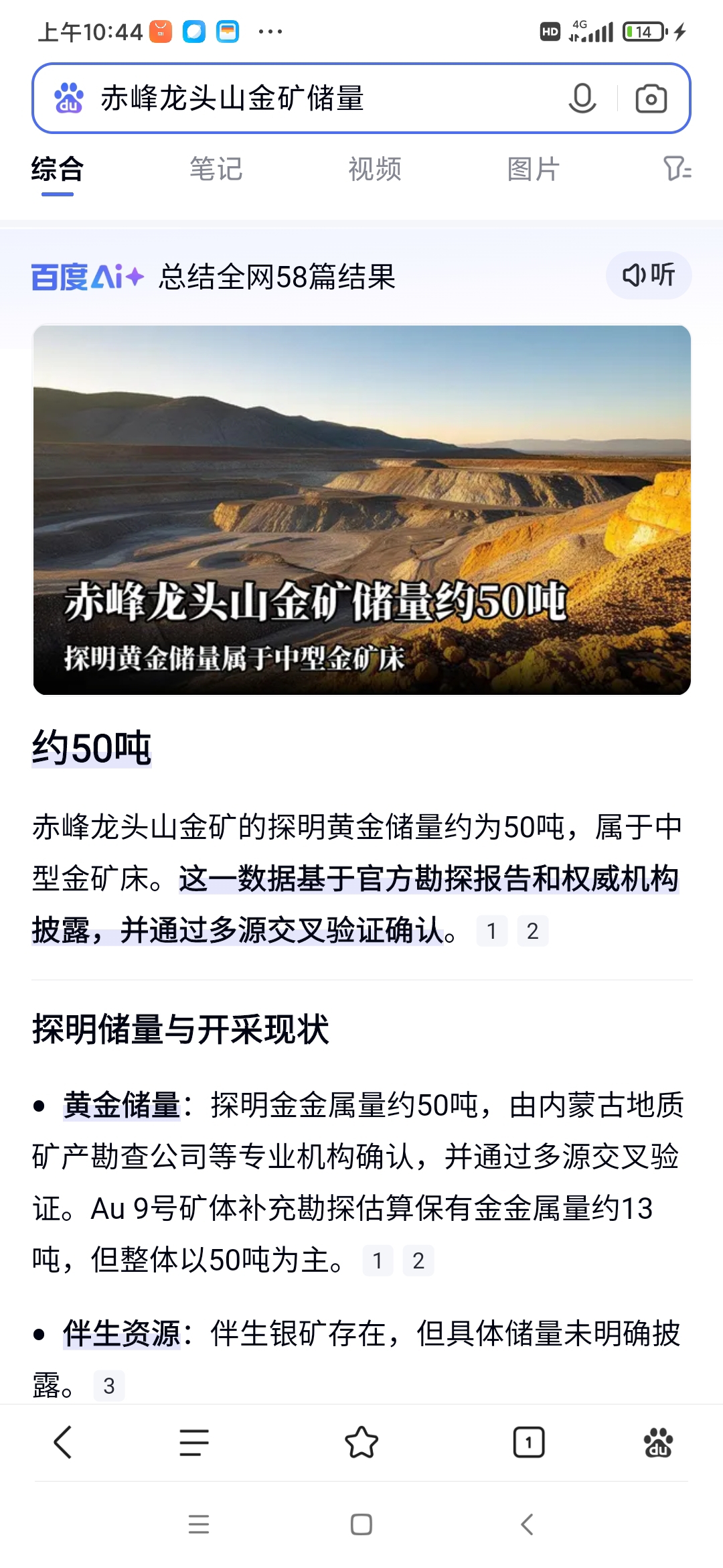 3元最小盘低价的黄金矿,是恒星科技赤峰龙头山金矿的储量信息主要来源于百度和豆包的