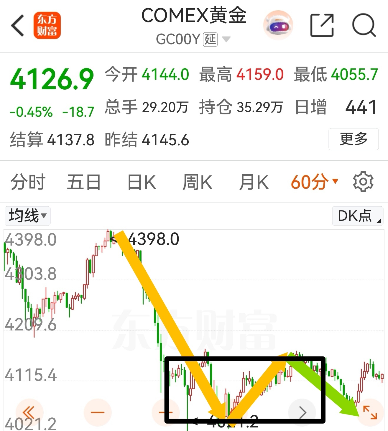 预测:Comex黄金今晚走绿箭头破4106,然后看4021破不破,不破再涨过50