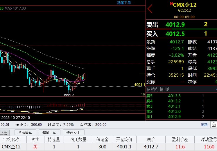 $COMEX黄金(COMEX|GC00Y)$ 黄金4001.1多单,开始抓住1手1160美金$德国DAX30(QQZS|GDAXI)$ #沪指明天能否突破4000点?# $上证指数(SH000001)$