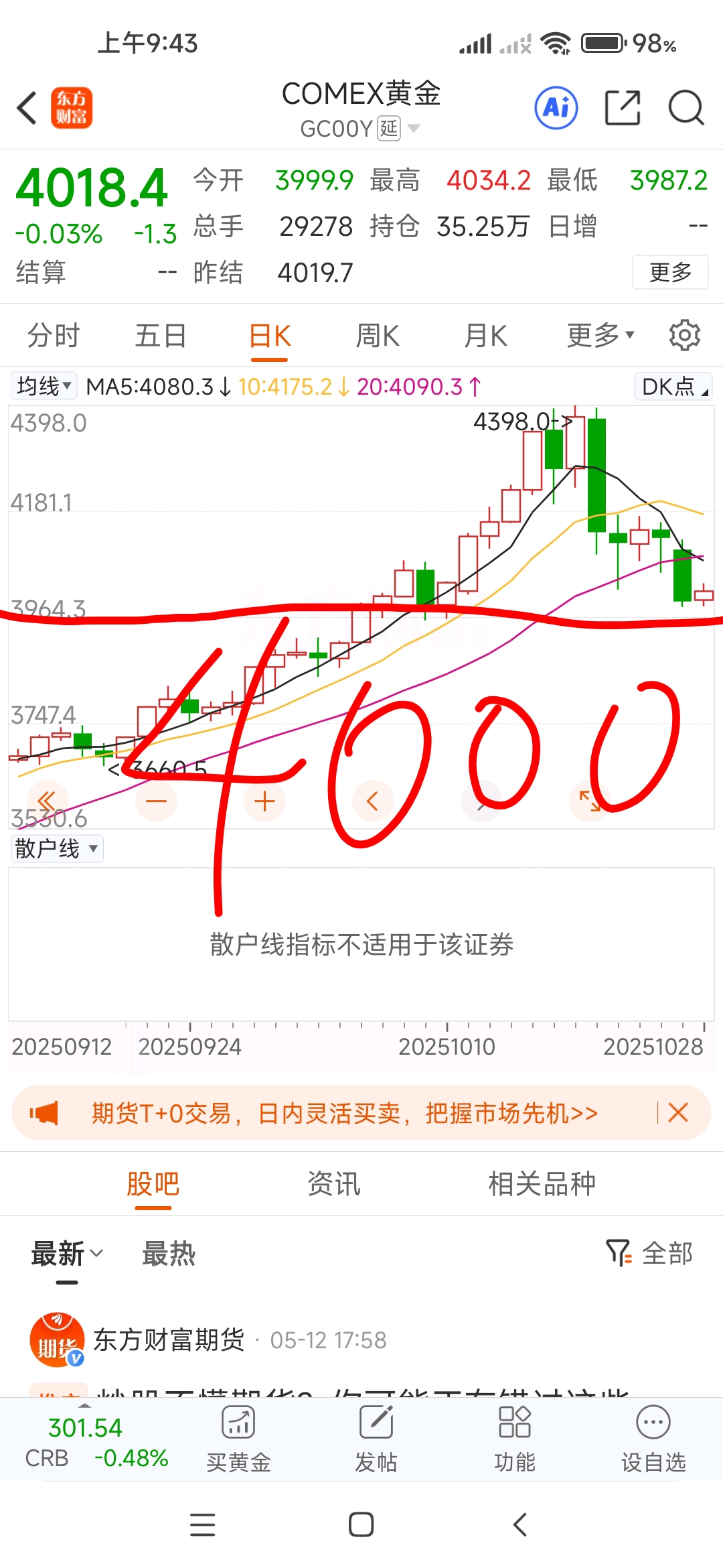 $COMEX黄金(COMEX|GC00Y)$ $秋林3(SZ400101)$ $S佳通(SH600182)$ 有些事后诸葛亮,黄金到4400,就看高到5000