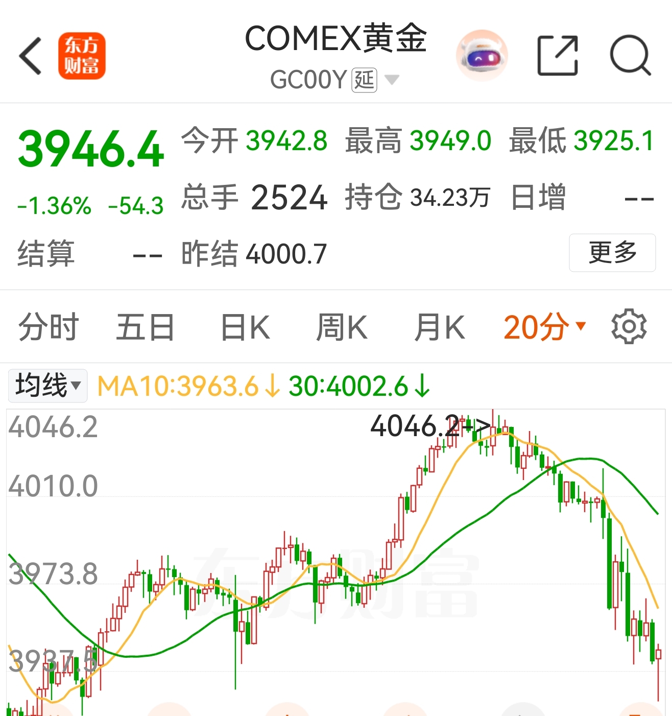 前天预测黄金反弹到4034,昨天最高到4046;